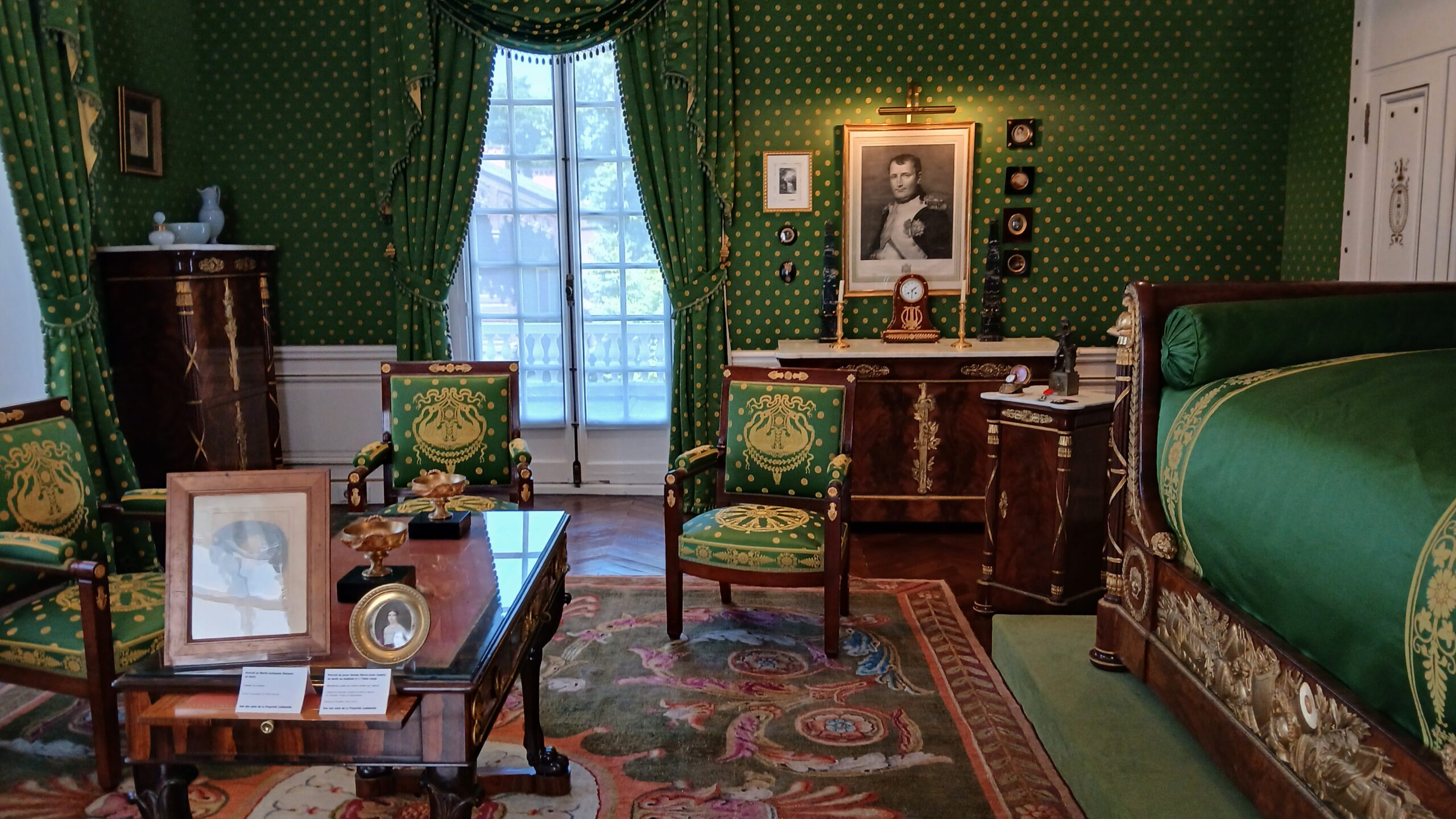 Le rez-de-chaussée de la maison, résidence de la famille Caillebotte de 1860 à 1879, a été entièrement remeublée avec des pièces venant du Mobilier national, la salle de billard ayant été directement inspirée d’un tableau inachevé de Gustave Caillebotte. Le premier étage comprend plusieurs salles évoquant la mémoire des trois frères : Gustave, tout d’abord, peintre et mécène des impressionnistes puis architecte naval et horticulteur ainsi que Martial, collectionneur de céramique, musicien et photographe et enfin Alfred, curé de Notre-Dame de Lorette à Paris. La salle du fond abrite la chambre à coucher parentale d’origine, de pur style Empire, rachetée en 2016 à un collectionneur (Photo 6). Au second étage, l’atelier du peintre a été reconstitué.