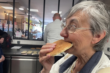 Tout d’abord il nous éclaire sur les différentes sortes de gaufres : il y a les gaufres de Bruxelles, les plus courantes, rectangulaires, fabriquées à partir d’une pâte liquide et qu’on déguste dans les foires ; les gaufres de Liège, moins moelleuses et plus petites ; les « strinj », gaufres sèches que l’on confectionne traditionnellement au nouvel an dans les Flandres ; et enfin, les gaufres fourrées, popularisées par la pâtisserie Méert à Lille – dont le Général de Gaulle raffolait paraît-il.